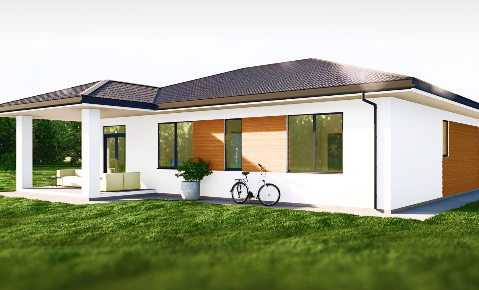 Современный проект Бонн — это отличное решение для тех, кто хочет уникальный и надежный загородный дом. Главная особенность дома — сочетание современных, простых и надежных материалов и грамотно рассчитаный и составленный проект. Архитнектурное решение достаточно простое и современное, учитывающее необходимую толщину стен, подобранную плотность газоблока, позволяющее монтировать штукатурный фасад без необходимости дополнительного дорогостоящего утепления. Первый и второй этаж выполняется из газоблока, перекрытие плитами, широкий лестничный марш между этажами. Проработанная архитектором эргономичнеая планировка делает пользование домом удобным. Большая гостинная с панорамными окнами, 4 спальни, 2 сан. узла, удобная прихожая и наша изюминка, которую высоко оценили наши клиенты — действительно вместительная гардеробная с шахтой для белья ведущей в постирочную позволяет установить недорогие и удобные системы хранения всех вещей семьи в одном месте, установить отпариватель, гладильную систему и большие зеркала или зеркальные двери. Удобный мансардный второй этаж, с высотой точки наклона кровли в 2 метра — специально расчитанное решение, позвон=ляет полноценно пользоваться вторым этажом и поднять свод кровли делая высоту потолков действительно захватывающей! Классика и современные тренды пересеклись в данном проекте, позволяя жителям данного дома наслаждаться удобством и комфортом.